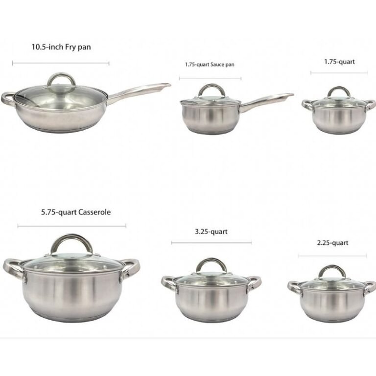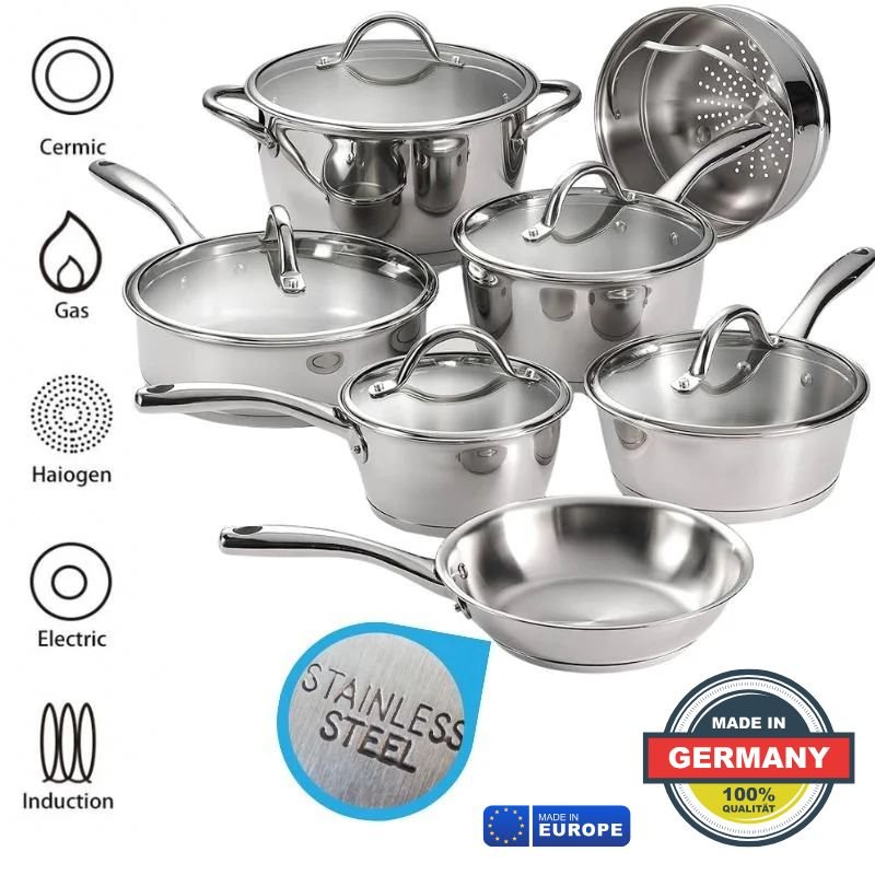 Комплектът включва 12 части: пълен комплект тенджери с диаметър от 15 см до 32 см + пълен комплект капаци.