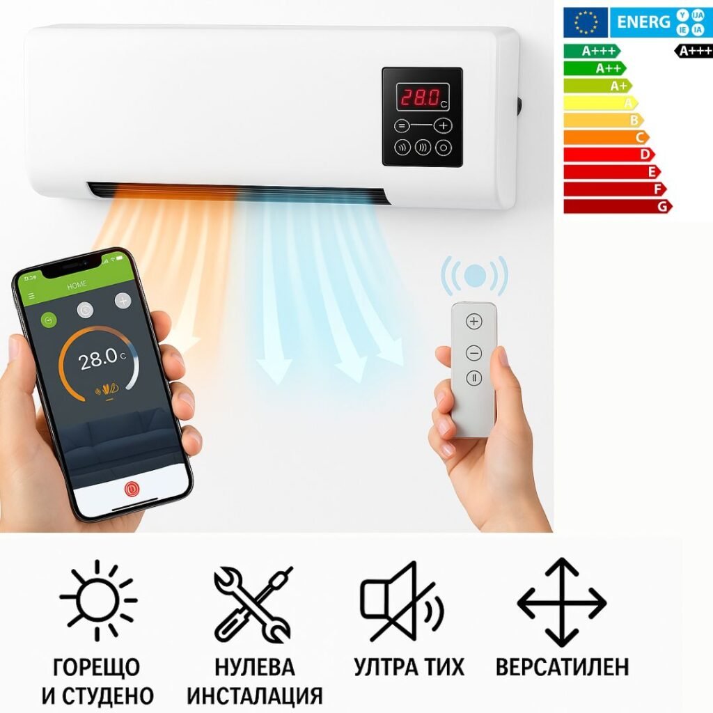 Едно компактно и практично устройство, което охлажда през лятото и затопля през зимата. Настройте идеалната температура според сезона и се насладете на уют и комфорт през цялата година!