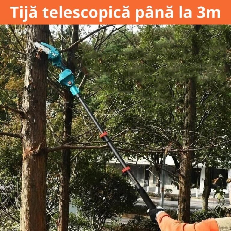 Datorită mânerului reglabil între 1,8 și 3 metri, poți ajusta lungimea în funcție de nevoile tale, ajungând cu ușurință la ramurile mai înalte sau zonele mai îndepărtate, în deplină siguranță, fără a folosi scara sau alte unelte suplimentare. Ideal pentru întreținerea grădinii, toaletarea copacilor sau curățarea gardurilor vii. Acest ferăstrău cu lanț oferă un control impecabil și o reducere semnificativă a oboselii.