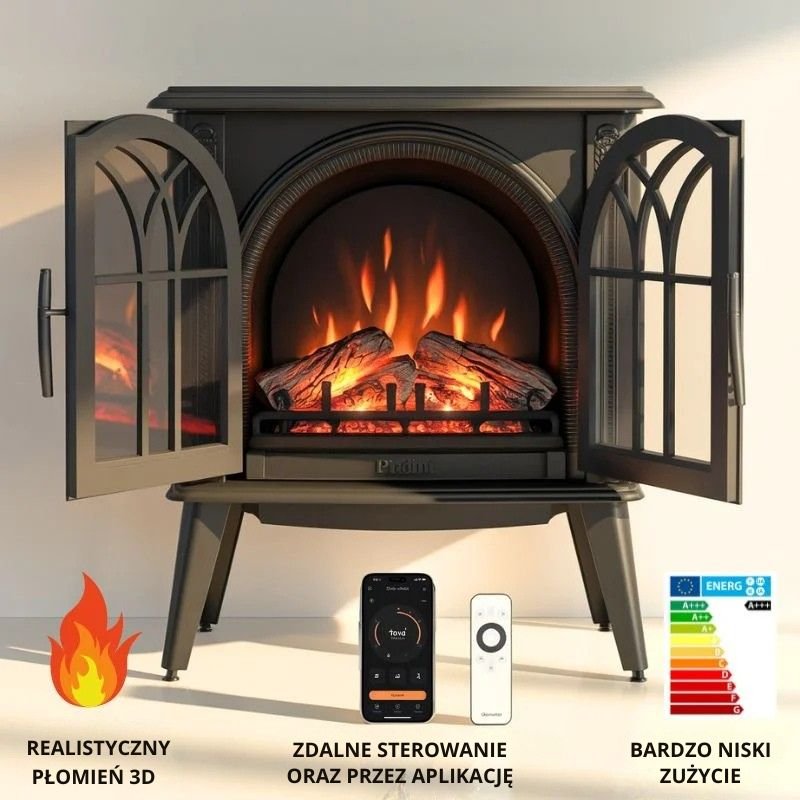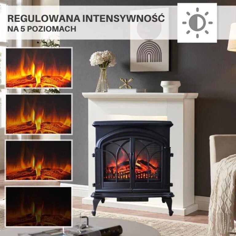Elektryczny kominek z realistycznym efektem płomienia 3D, wydajne ogrzewanie przy niskim zużyciu energii i inteligentne sterowanie