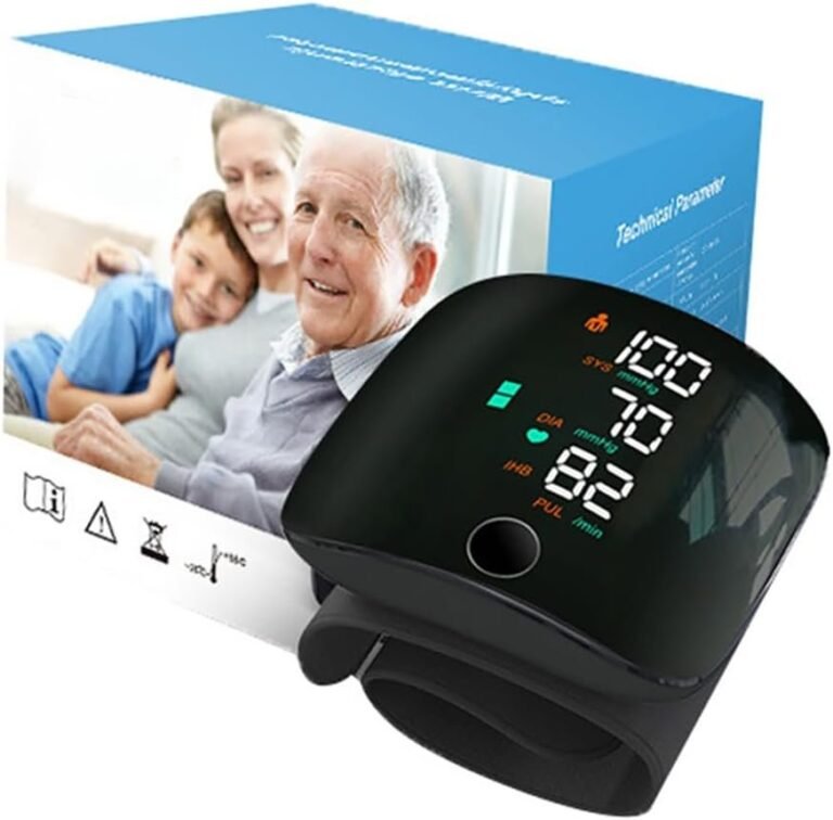 Misuratore digitale da polso ideale per anziani: facile da indossare, con un solo pulsante per avviare la misurazione, numeri grandi e luminosi ben leggibili, memoria doppia per monitorare l’andamento nel tempo e controllo semplice direttamente da casa.