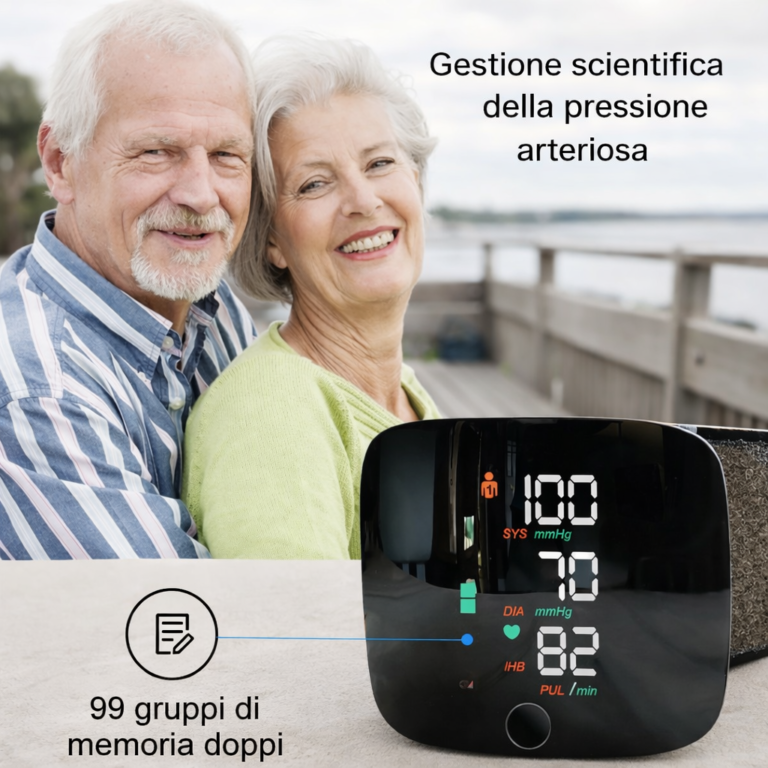 Risultati chiari in pochi secondi senza complicazioni: premi un tasto e lui misura, ti guida con voce in italiano e ti fa capire subito la situazione. Salva i valori per 2 persone, è leggibile anche la sera e segnala eventuali irregolarità. Ricaricabile, sempre pronto
