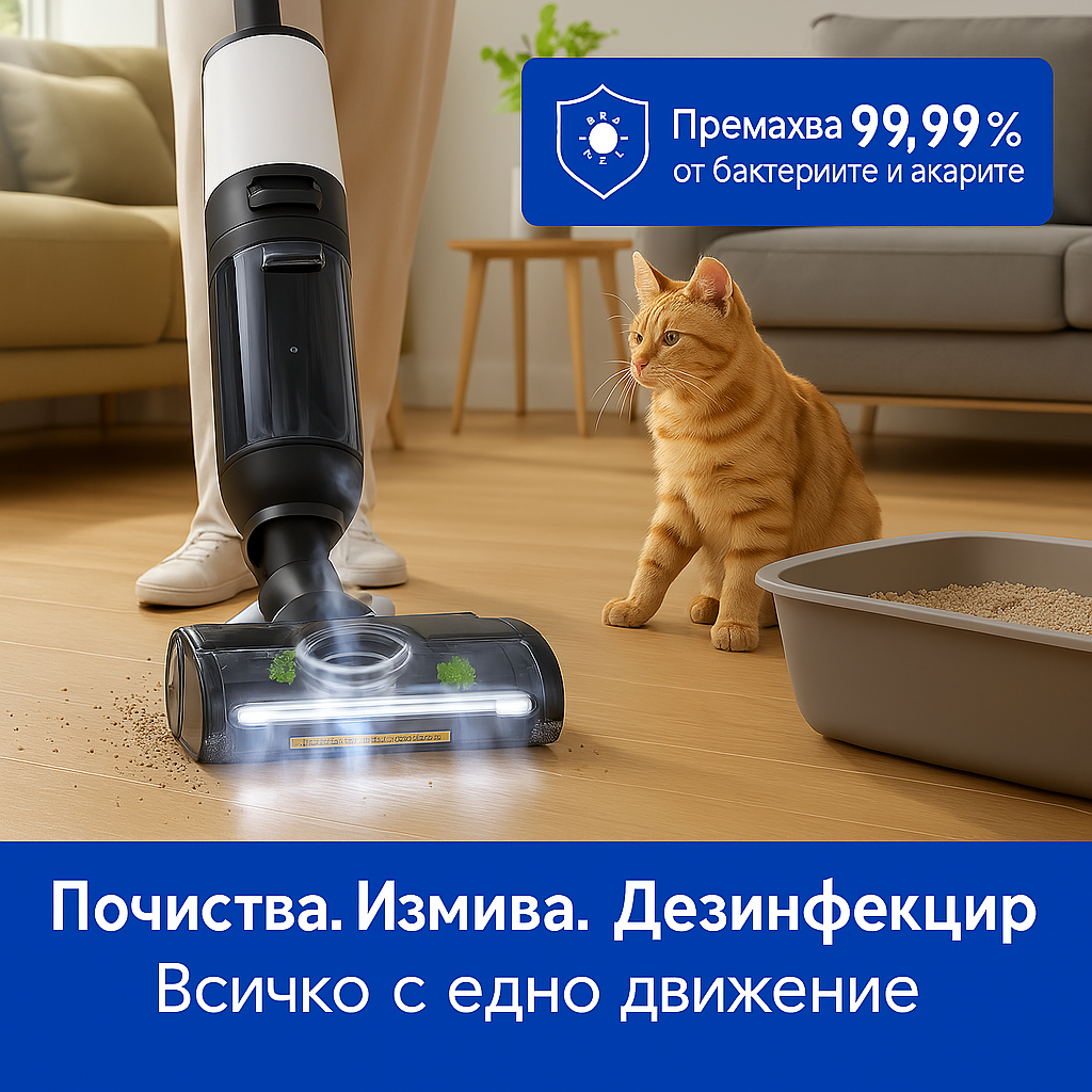 Никога досега не съм използвал(а) толкова мощна прахосмукачка! Тя прахосмукира, измива и дезинфекцира всичко само с едно минаване. Използвам я всеки ден и домът винаги е перфектно чист. Сбогом на парцалите и кофите с вода!