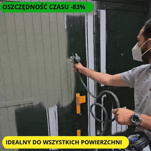 Dotarł na czas, bez żadnych zastrzeżeń, działa perfekcyjnie. Wybrałem go, ponieważ nie radzę sobie z pędzlami i wałkami, i mogę powiedzieć, że dla mnie jest bardzo wygodny. Oszczędza się czas i farbę — pomalowałem całe mieszkanie, a efekt był doskonały.