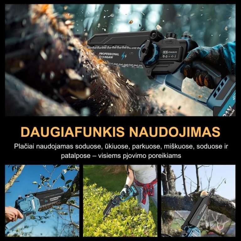 Niekada nemaniau, kad akumuliatorinis pjūklas gali būti toks galingas! „Buvau nustebintas šio pjūklo jėga. Maniau, kad akumuliatorius neprilygs benzininiam pjūklui, tačiau jis pjauna taip pat efektyviai! Naudojau jį gyvatvorėms genėti ir keliems medžiams pjauti – rezultatas buvo puikus. Be to, jis toks lengvai naudojamas: jokio laido, jokio mišinio, tik įkrauni ir dirbi!“