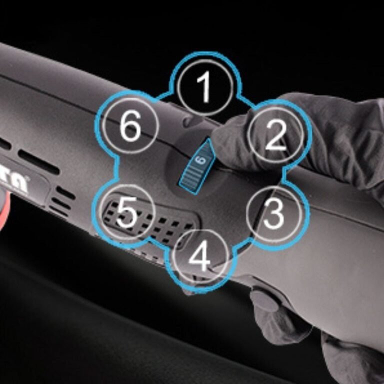 Ajusta fácilmente la velocidad girando el selector y elige entre 6 niveles de 2000 a 4500 RPM. La micro pulidora se adapta a cada necesidad de trabajo, permitiéndote seleccionar la velocidad más adecuada para pulir, refinar o revitalizar la carrocería con precisión y control total.